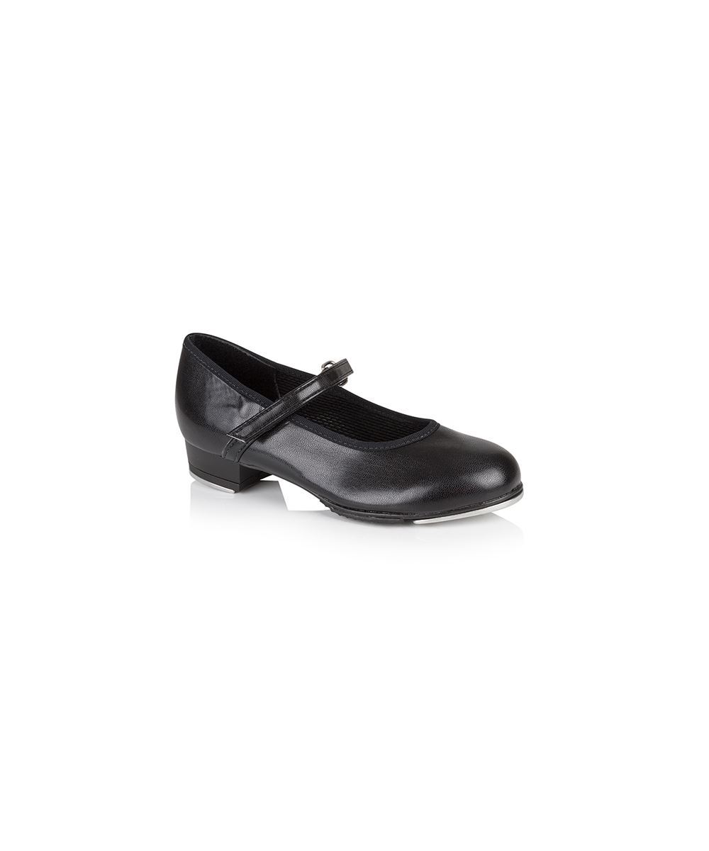 Children's tap shoe in black PU, complete with velcro fastening and pre-fitted taps.