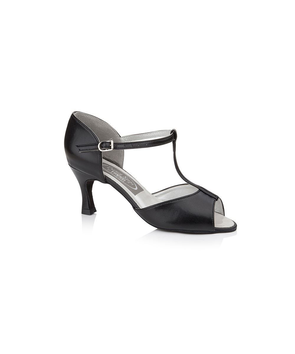 The Jade is a simple but bold ladies social dance shoe in faux leather, featuring an ankle strap, T-bar, silver buckle and open toe. The sophisticated and stylish design only adds to this comfortable and secure hand crafted shoe, making it perfect for any social dance event.