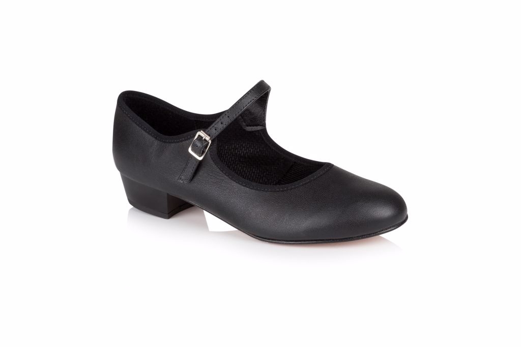 The outstanding hand-crafted Leather Buckle Bar Shoe offers simplicity, comfort and sturdiness for your performances. This shoe features a tan resin sole, flat binding, and an ankle bar strap fastening for added stability.