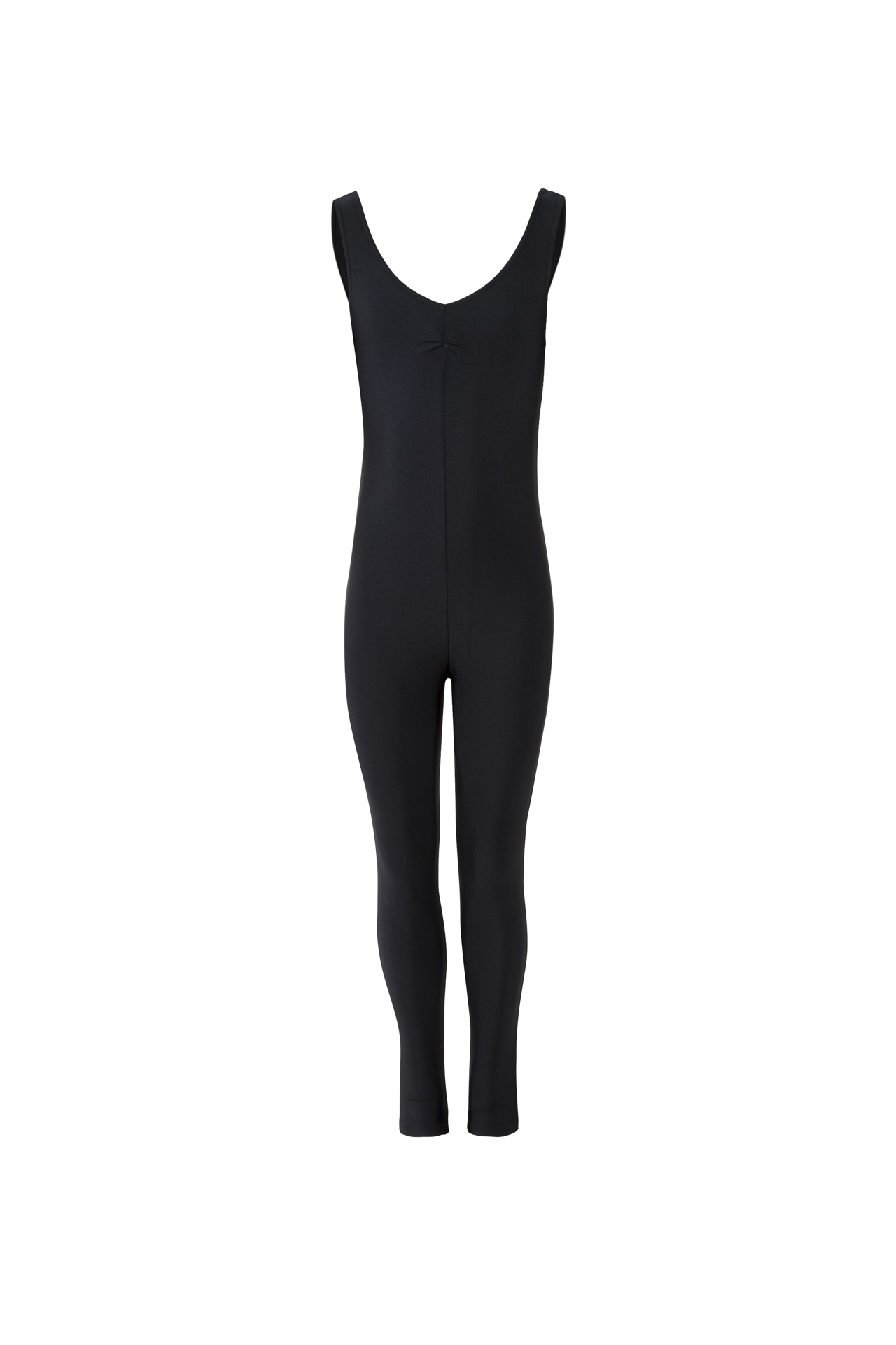 Sleeveless stirrup catsuit with ruche detail.