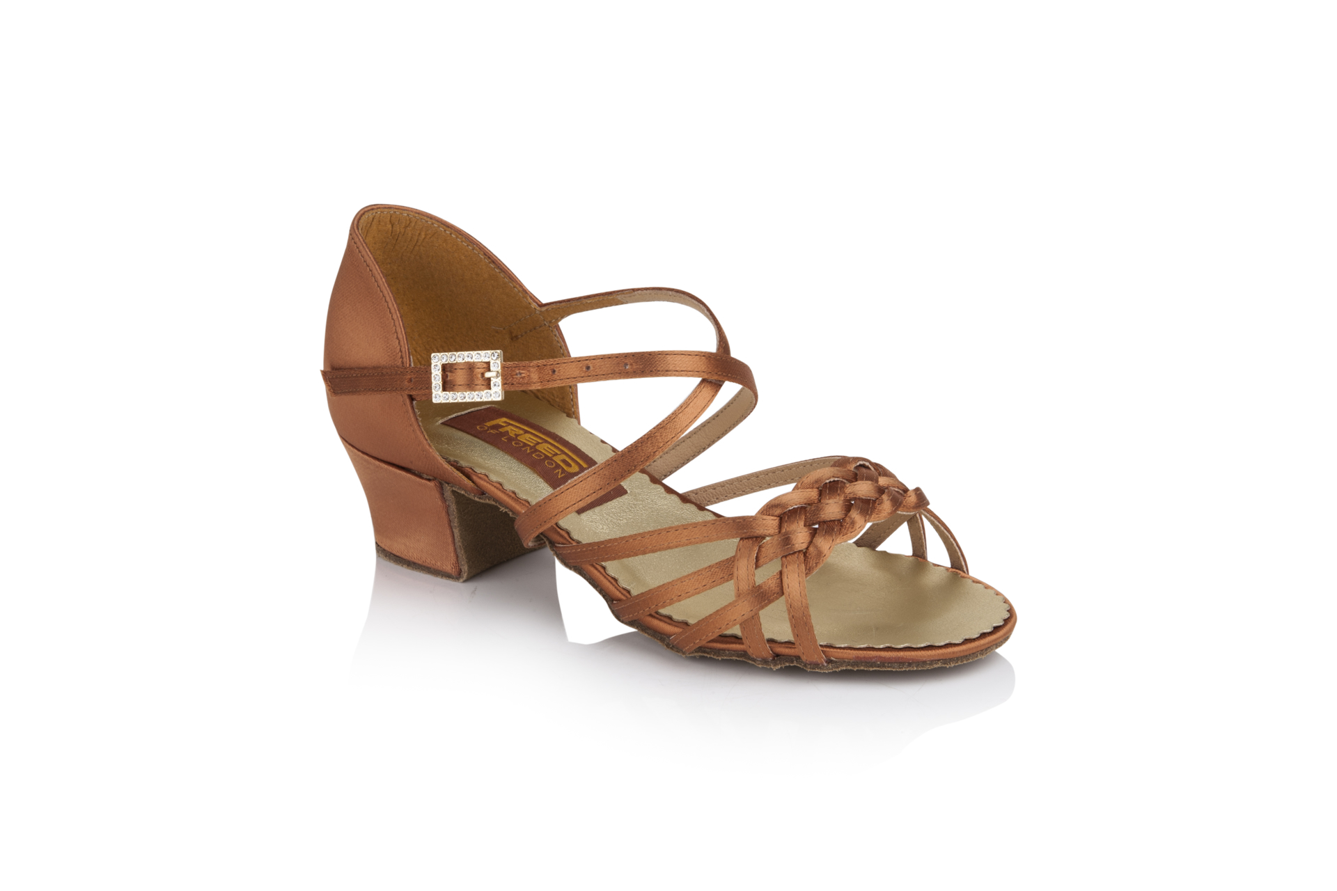 Latin sandal in satin, with 5 strip vamp, diamante centre piece and diamante buckle.