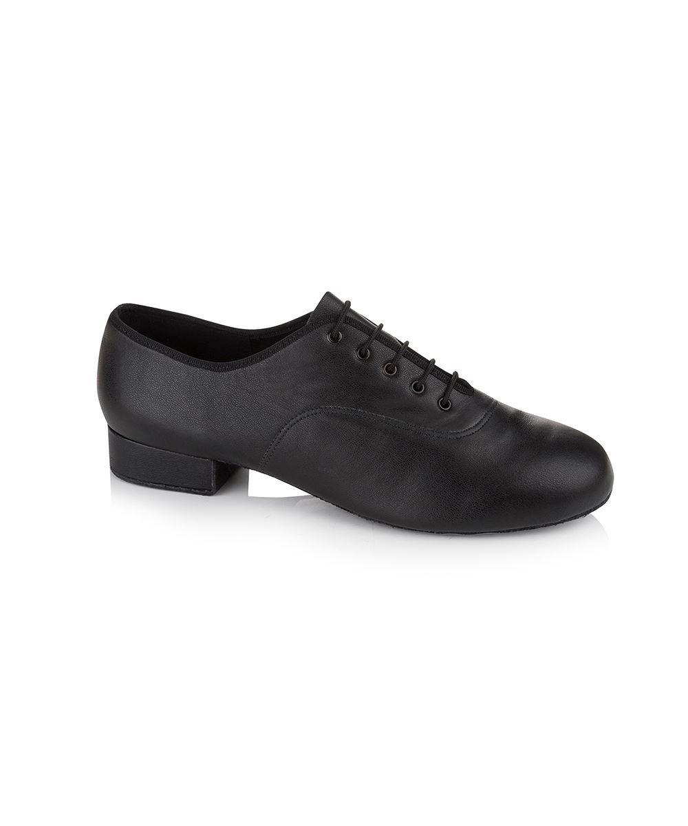 A standard patent lace-up shoe.