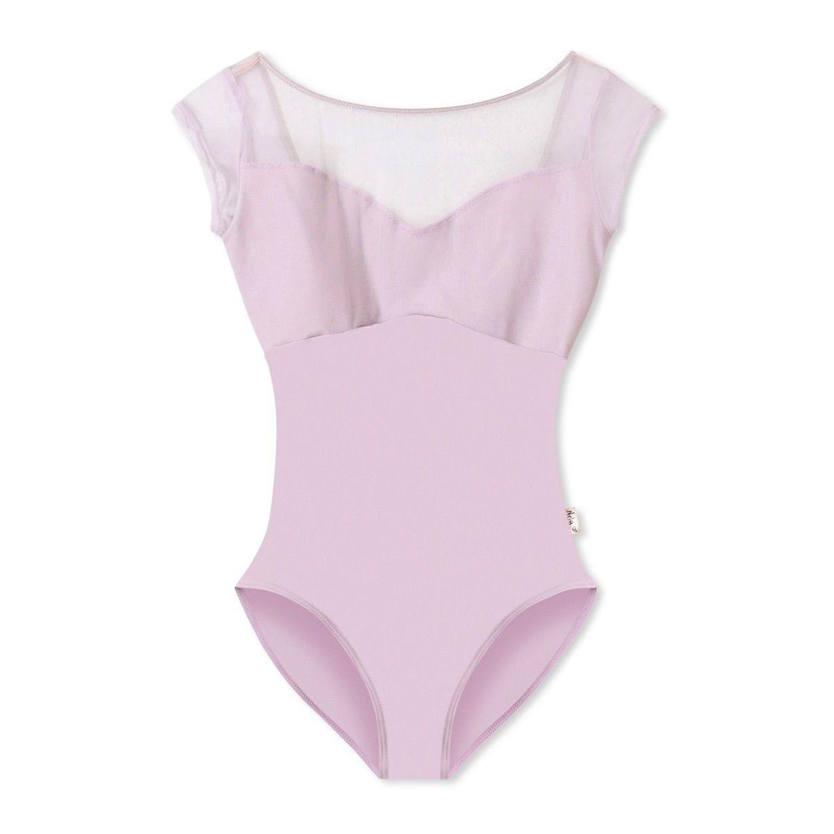 A sleeveless leotard with a V-cut neck that makes the line from the neck to the décolleté look long and beautiful.