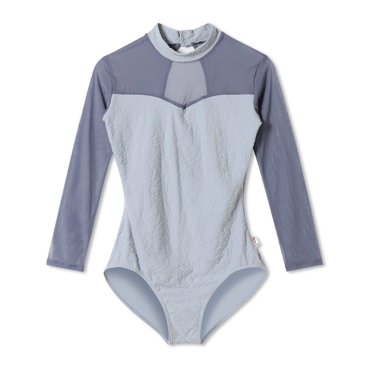 A high neck 3/4 sleeve leotard made of original imported jacquart material with a puffy, soft and comfortable texture, with the silhouette of Nella's beloved cats hidden in the arabesque pattern. [Design Point] Marianela Nuñez's two beloved cats.