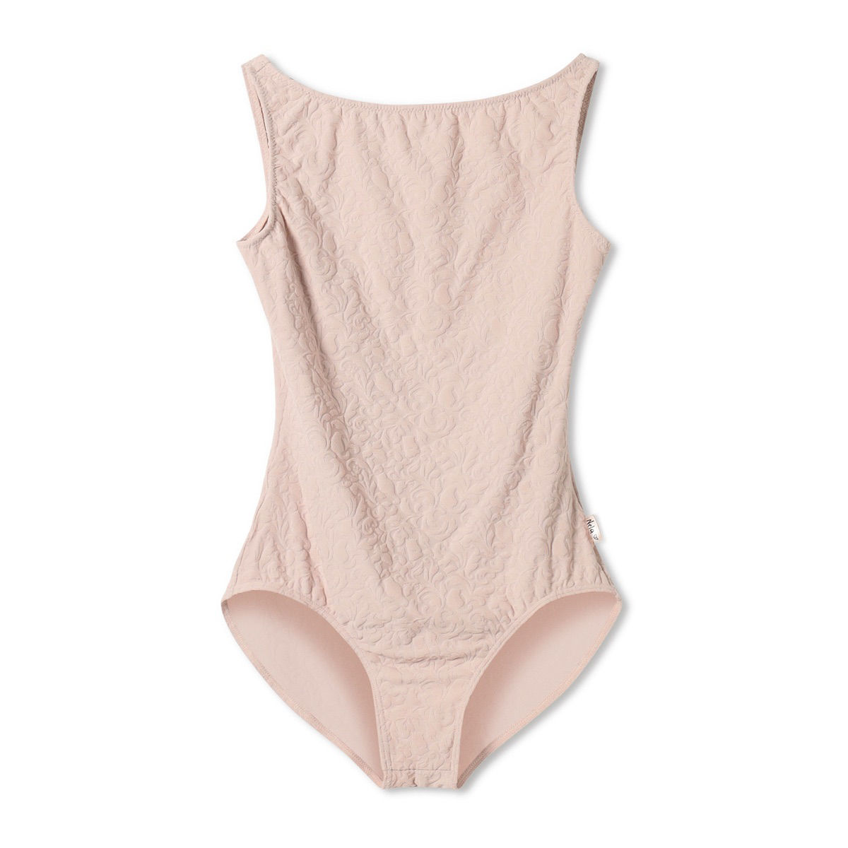 Sleeveless leotard made of original imported jacquart material with a soft and comfortable texture, with silhouettes of Nella's beloved cats hidden in the arabesque pattern. [Design point] The motif is Marianela Nuñez's two beloved cats.