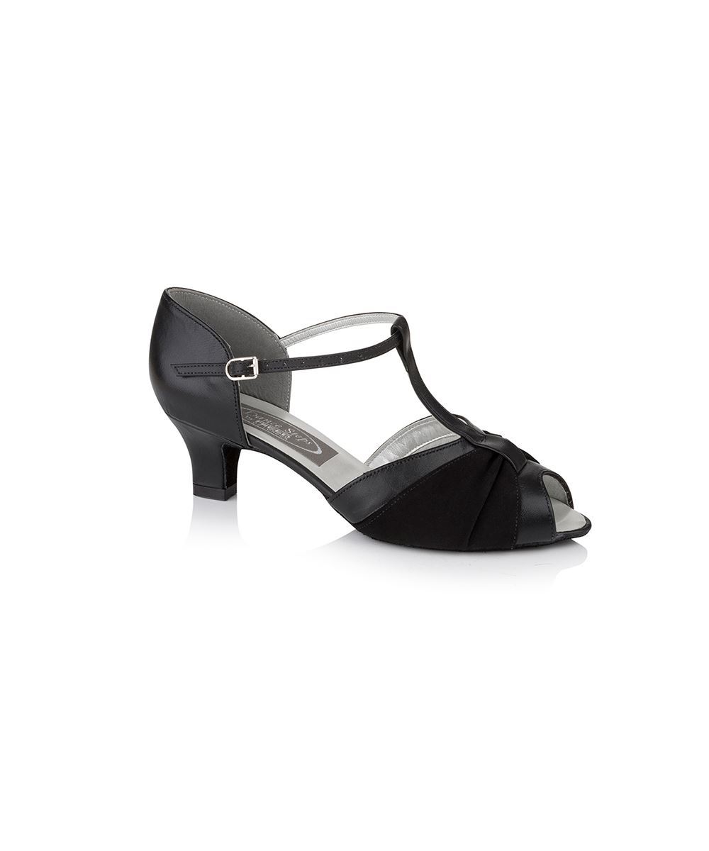 The Tanzanite is a simple and sophisticated social shoe, with a T-bar and ankle strap, a silver buckle and a contrasting vamp with ruche detailing. This hand crafted shoe offers complete comfort and stability when dancing, that paired with this classic design makes the Tanzanite the perfect addition to your dance routines.