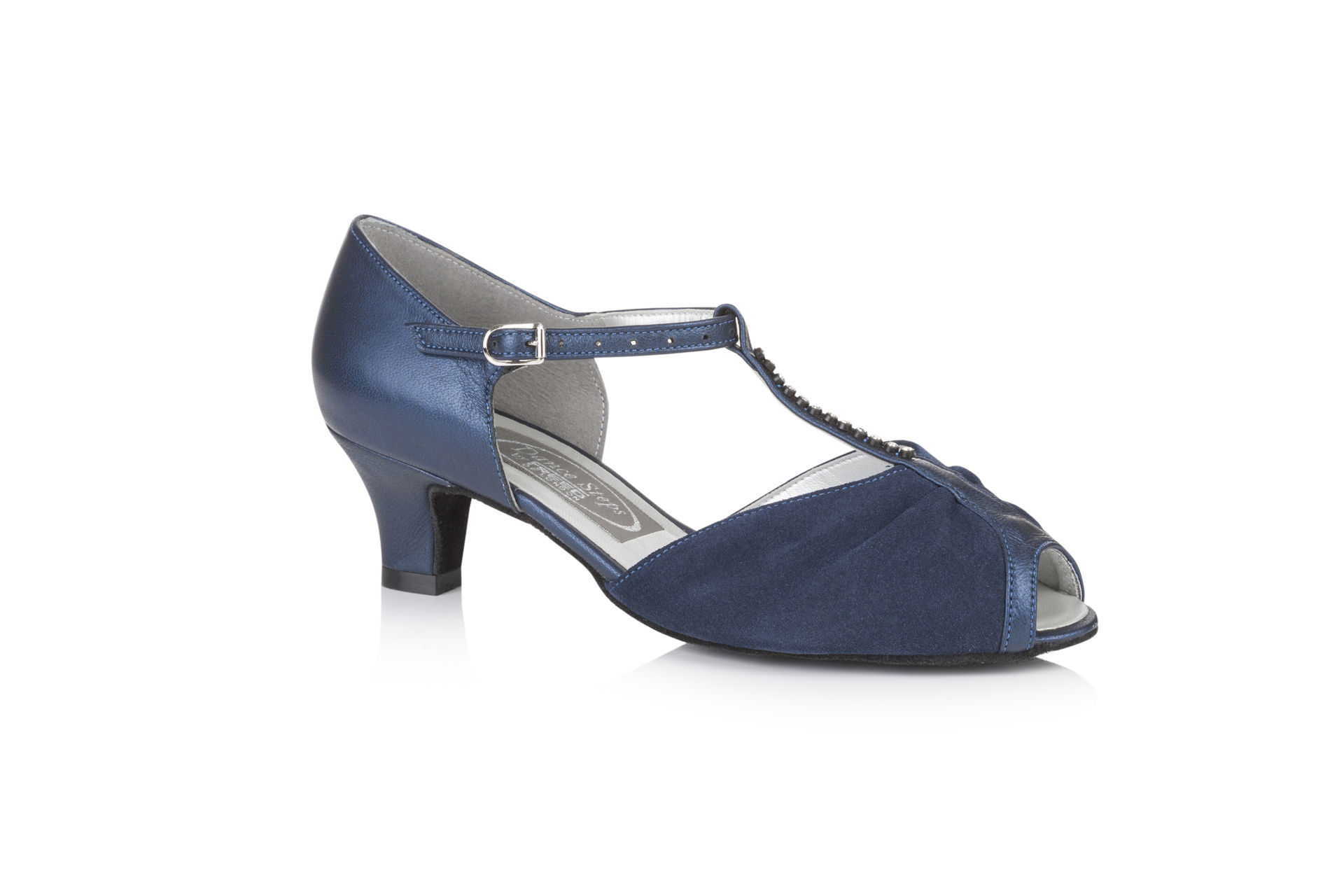 The Saturn is an open toe t-bar sandal with a ruched vamp overlay and diamante centrepiece. E Fitting.