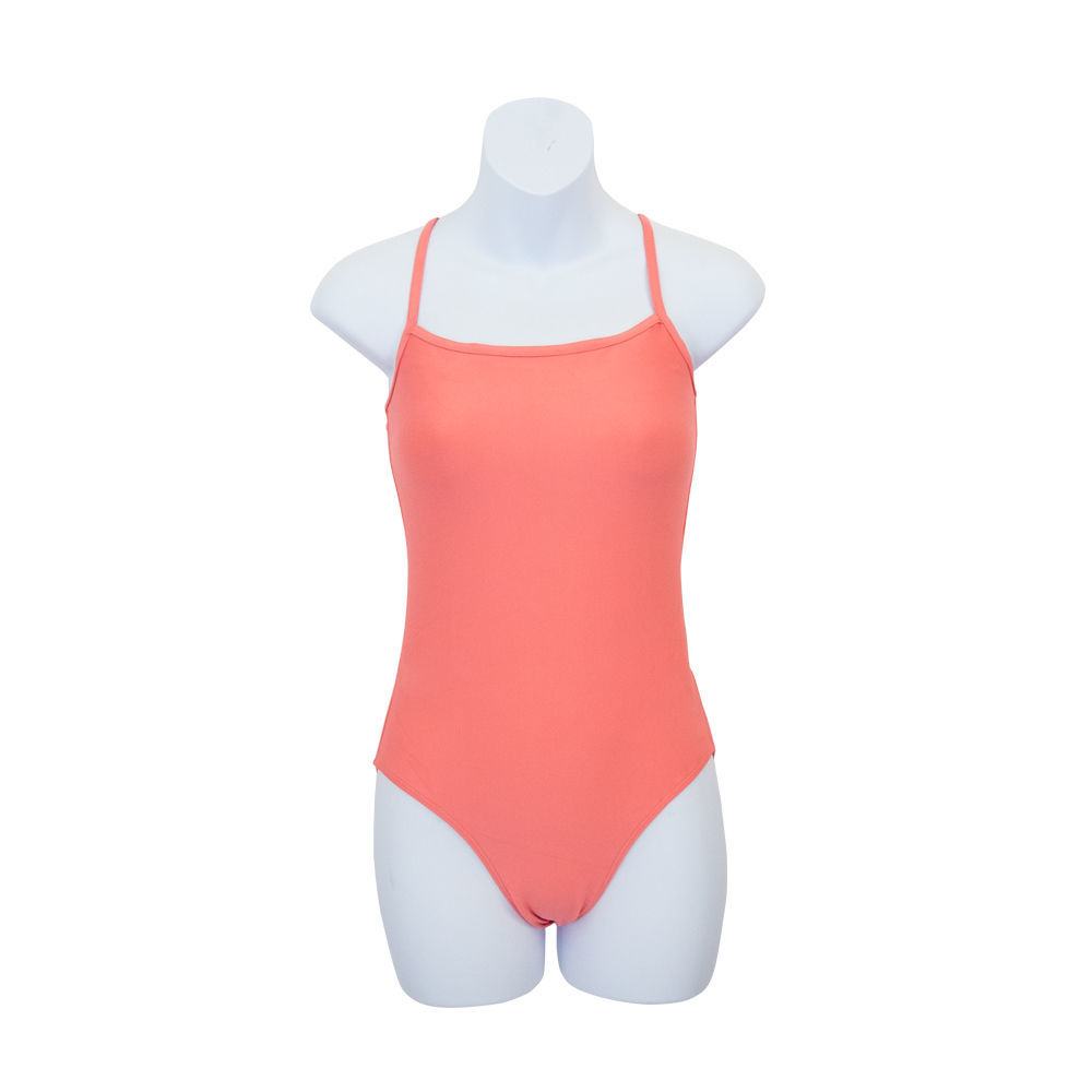 Leotard with thin straps and V back.
